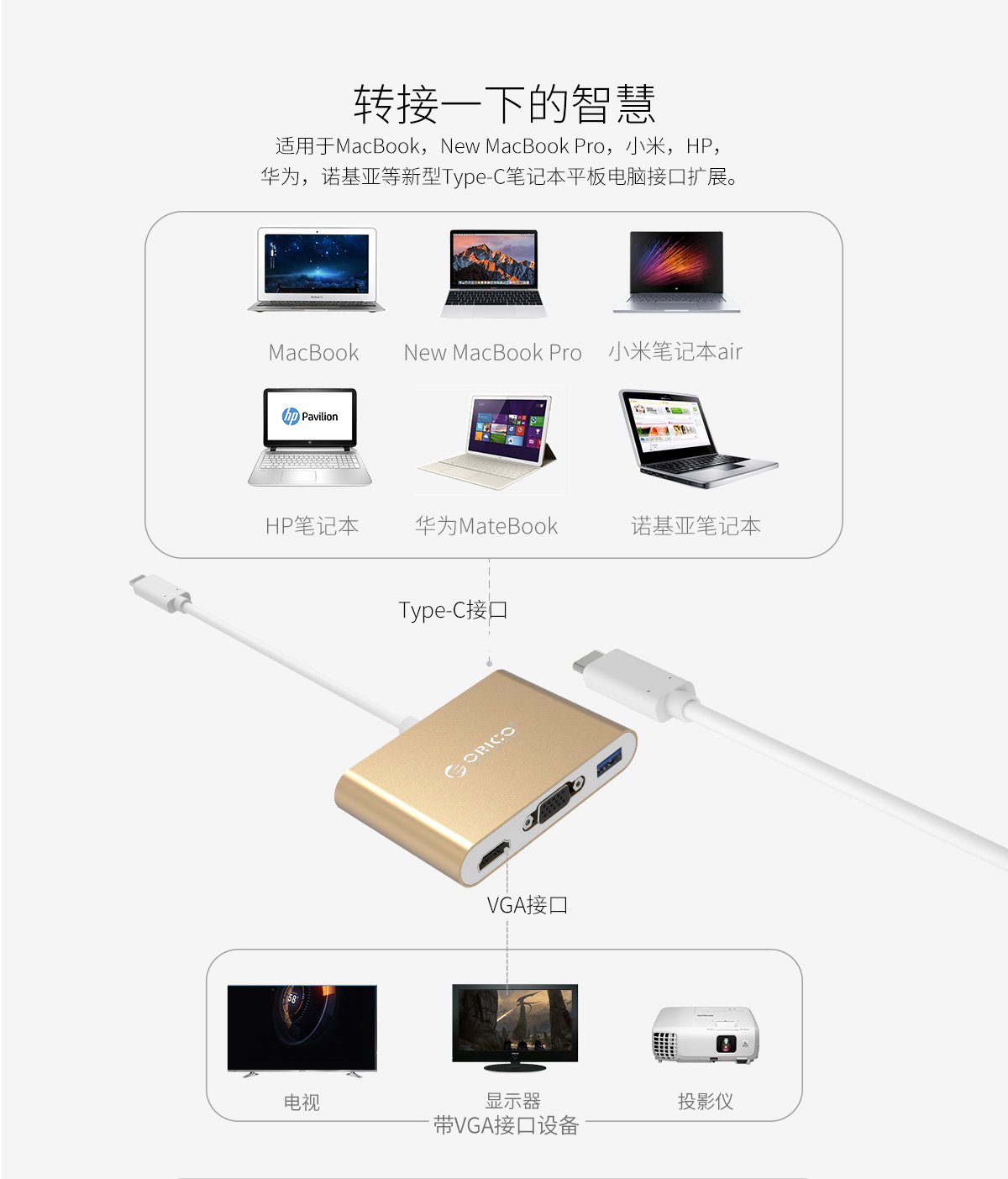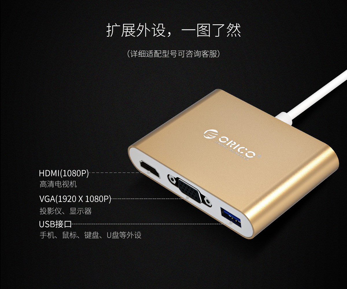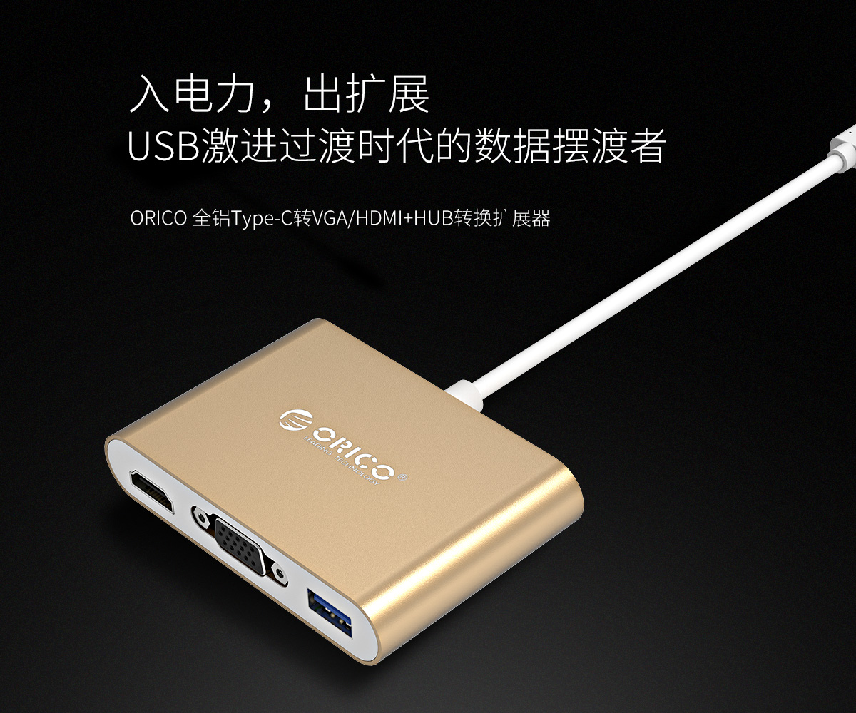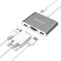 鋁合金Type-C轉(zhuǎn)Type-C/Type-A/VGA/HDMI多功能擴(kuò)展塢