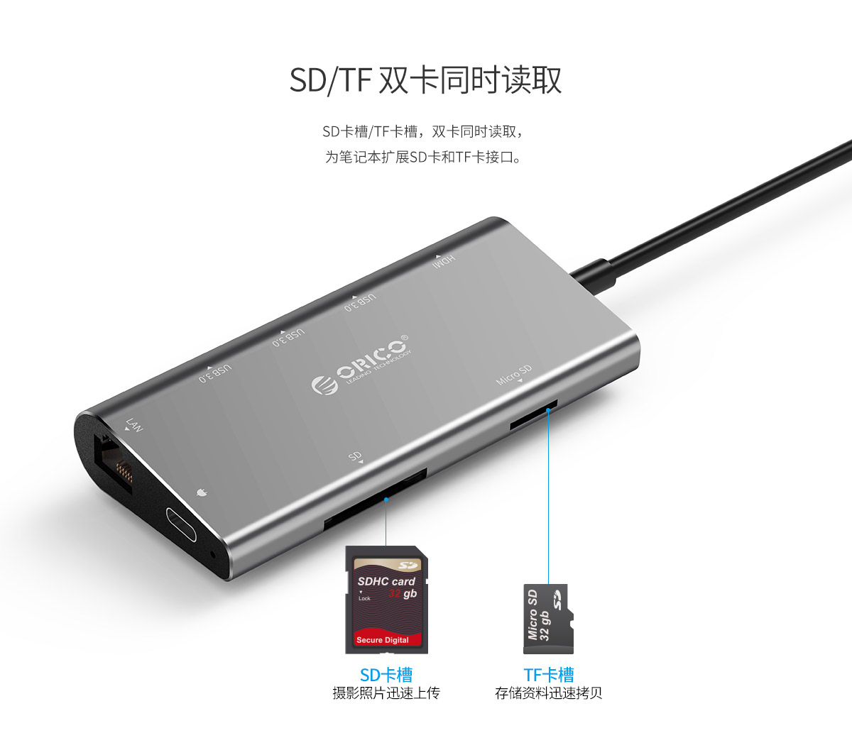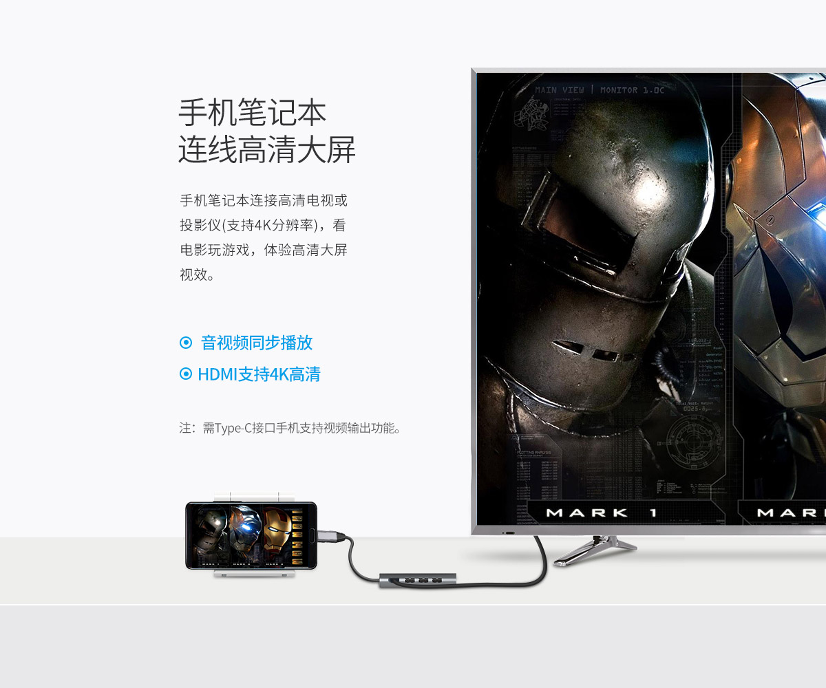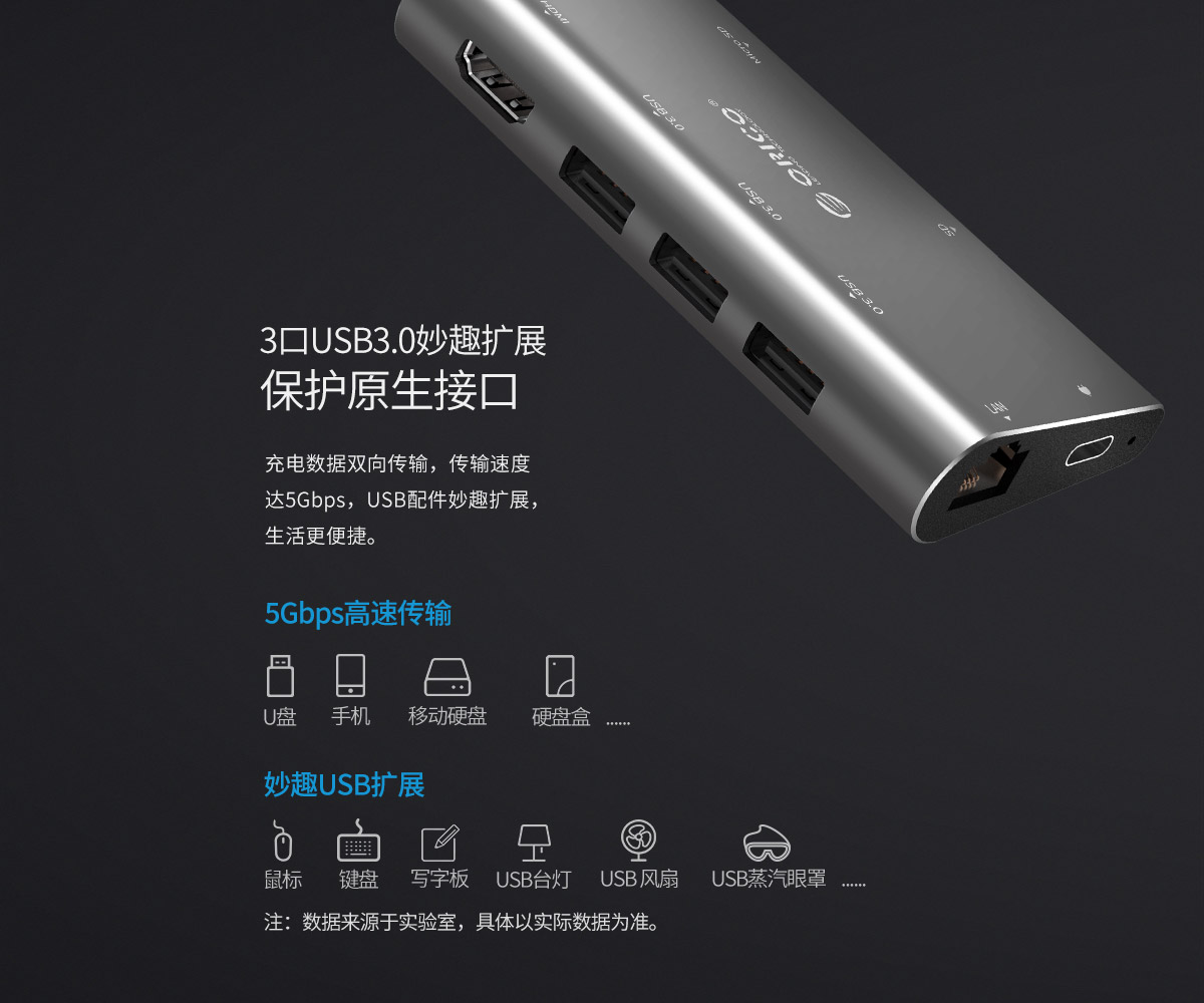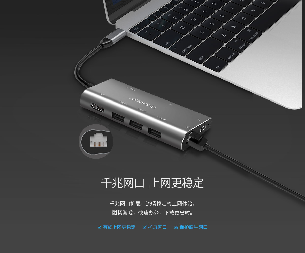 鋁合金外殼 高清視頻接口擴展 多接口多功能擴展 連體數據線設計 千兆網口擴展
