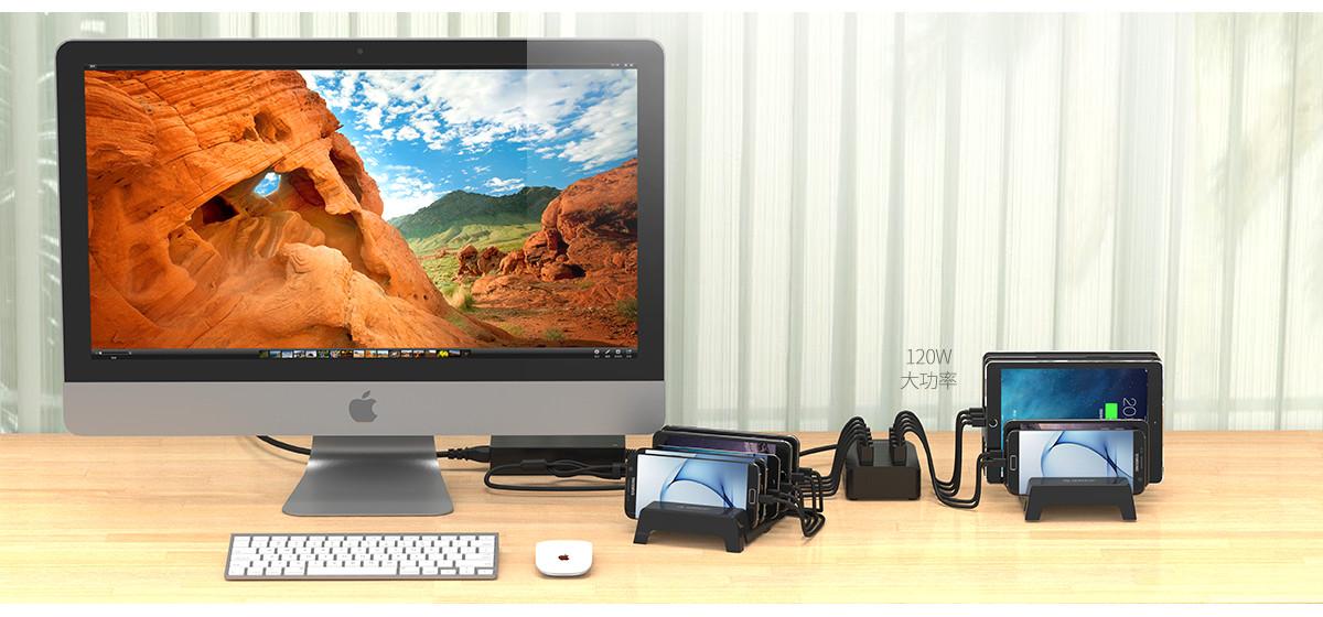 120W總功率 10口桌面智能充電器
