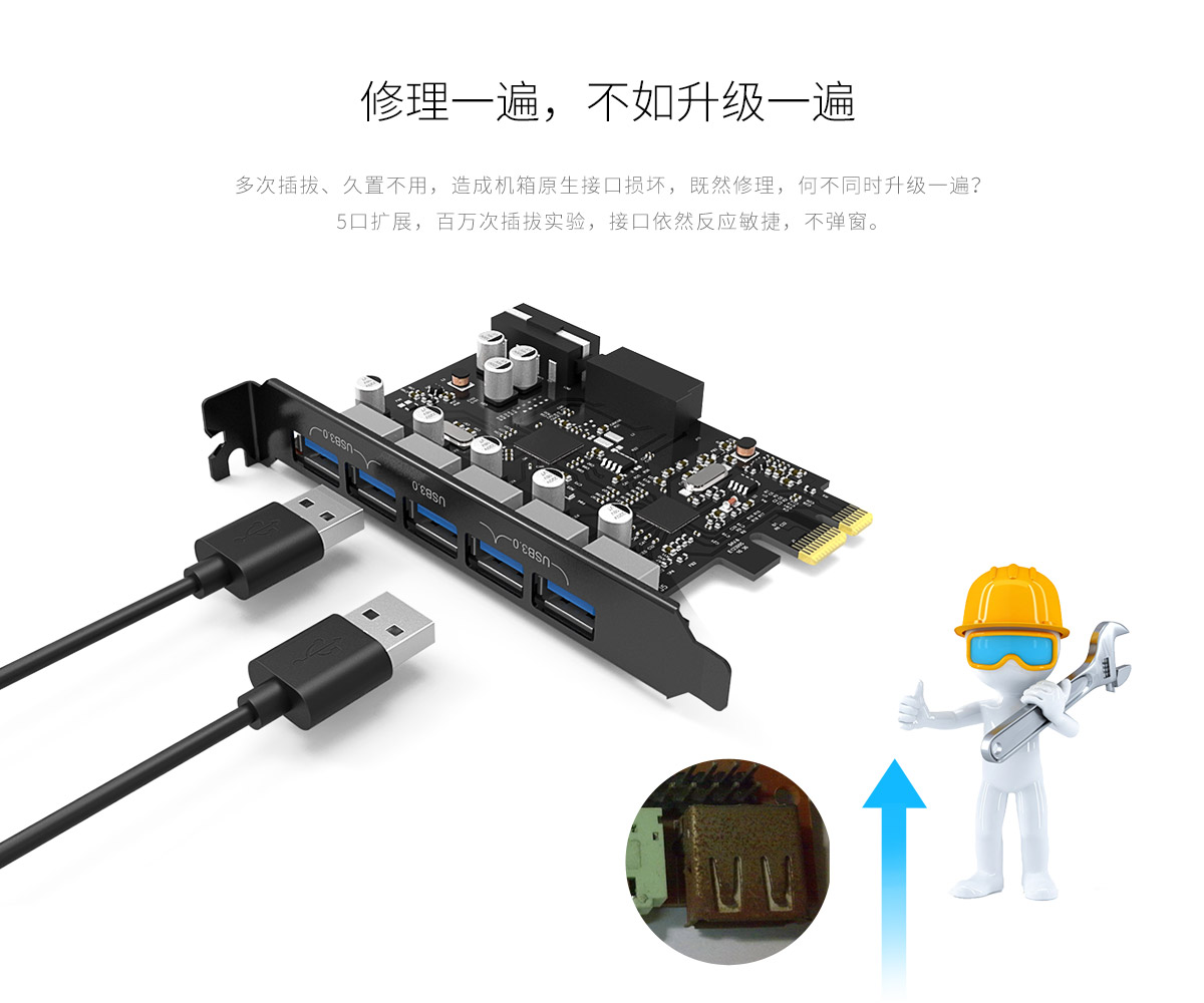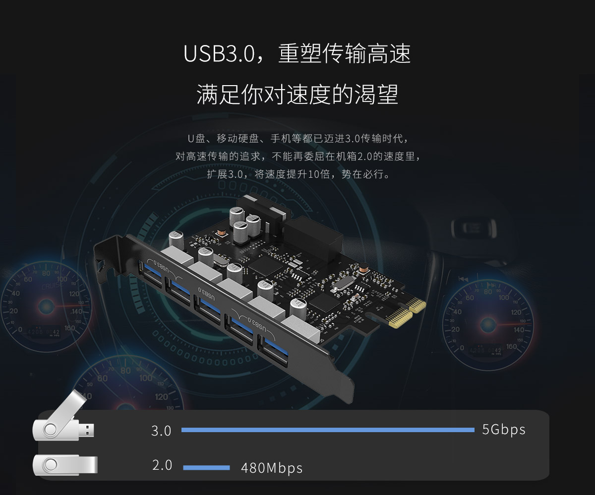 雙芯片5口USB3.0 臺式機PCI-E擴展卡