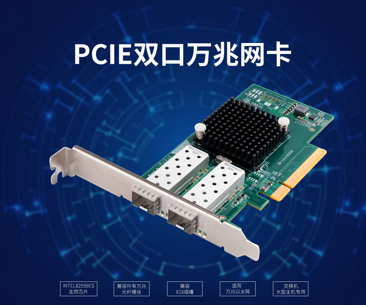 2口萬兆網卡PCI-E擴展卡,PCIEX8接口兼容X16插槽