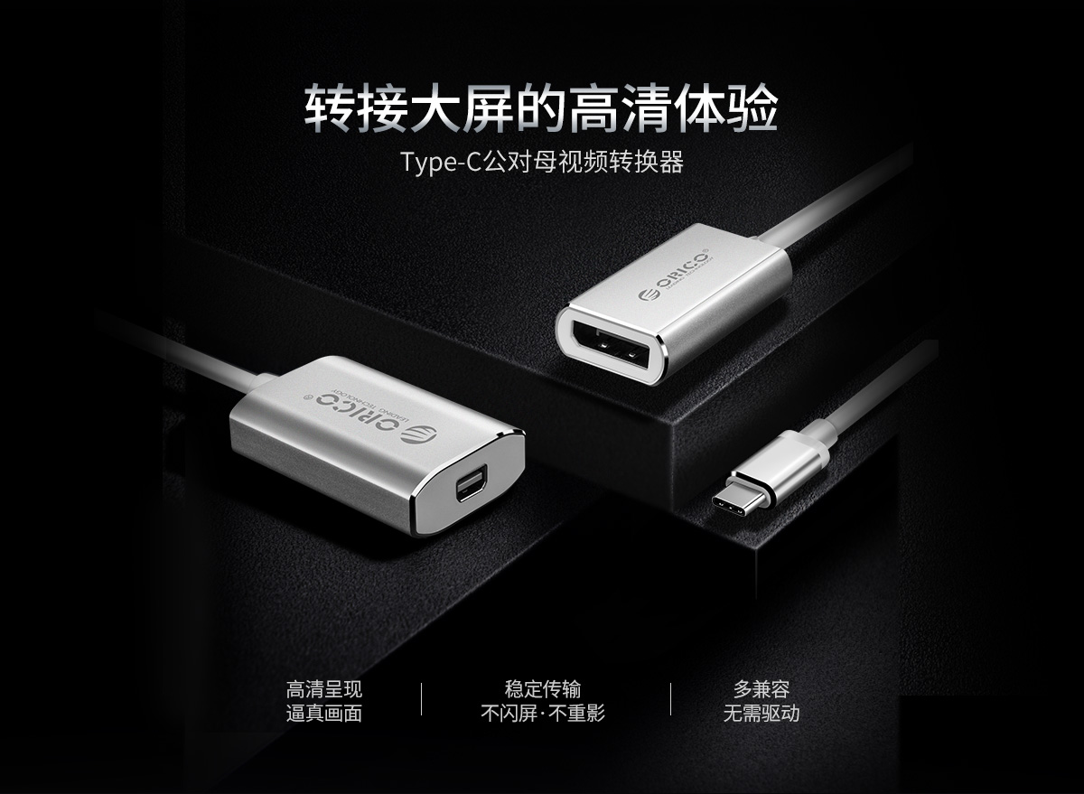 Type-C轉Mini DP公對母視頻延長線轉換器