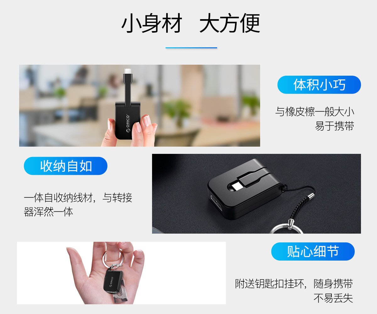 Type-C轉HDMI公對母視頻轉接頭帶掛環