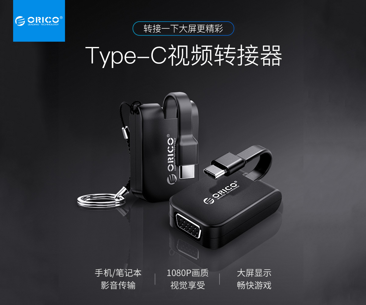 Type-C轉VGA公對母視頻轉接頭帶掛環