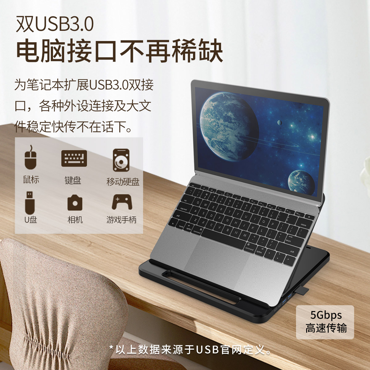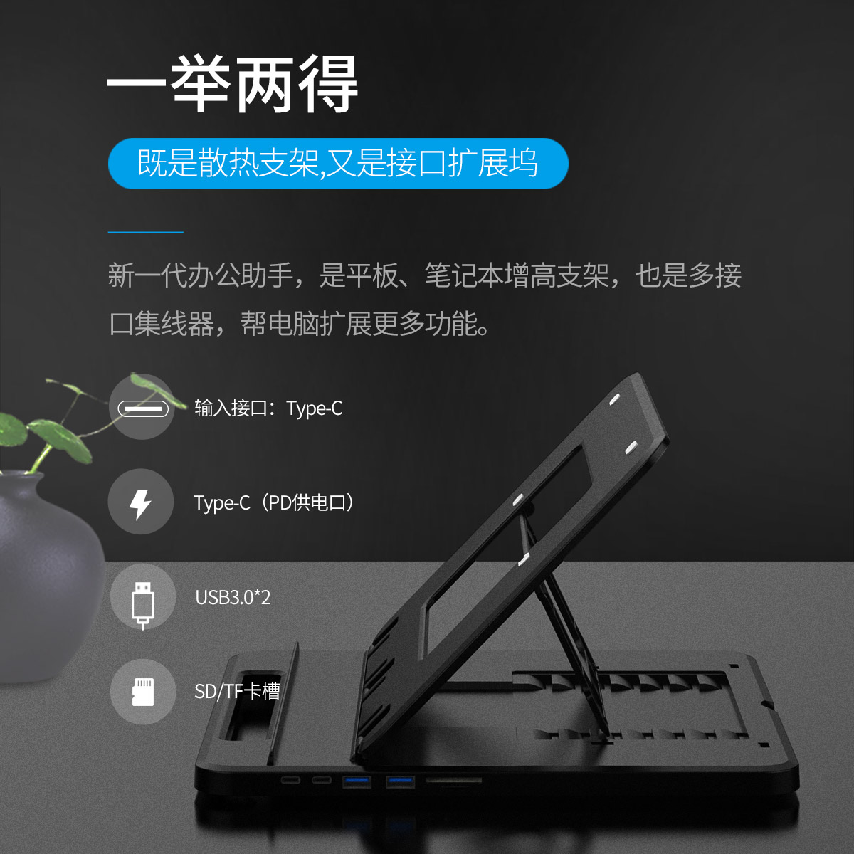 多檔支架式拓展塢,支持SD/TF卡