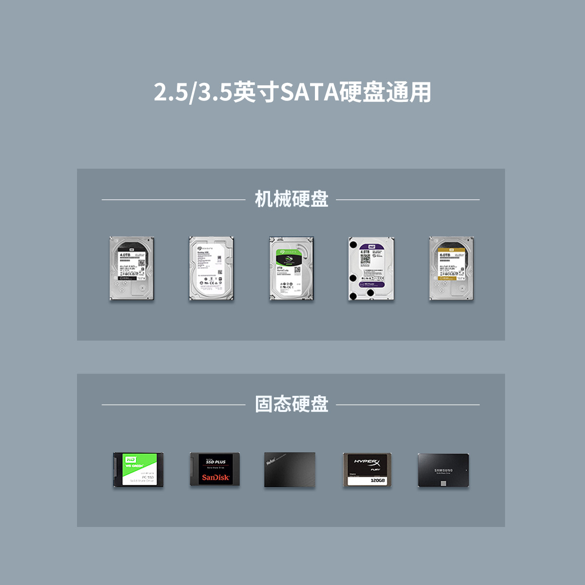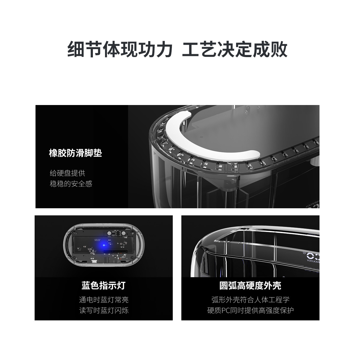 采用PC透明材質(zhì)打造,全透視效果,兼容不同厚度2.5寸/3.5寸SATA硬盤/SSD固態(tài)硬盤
