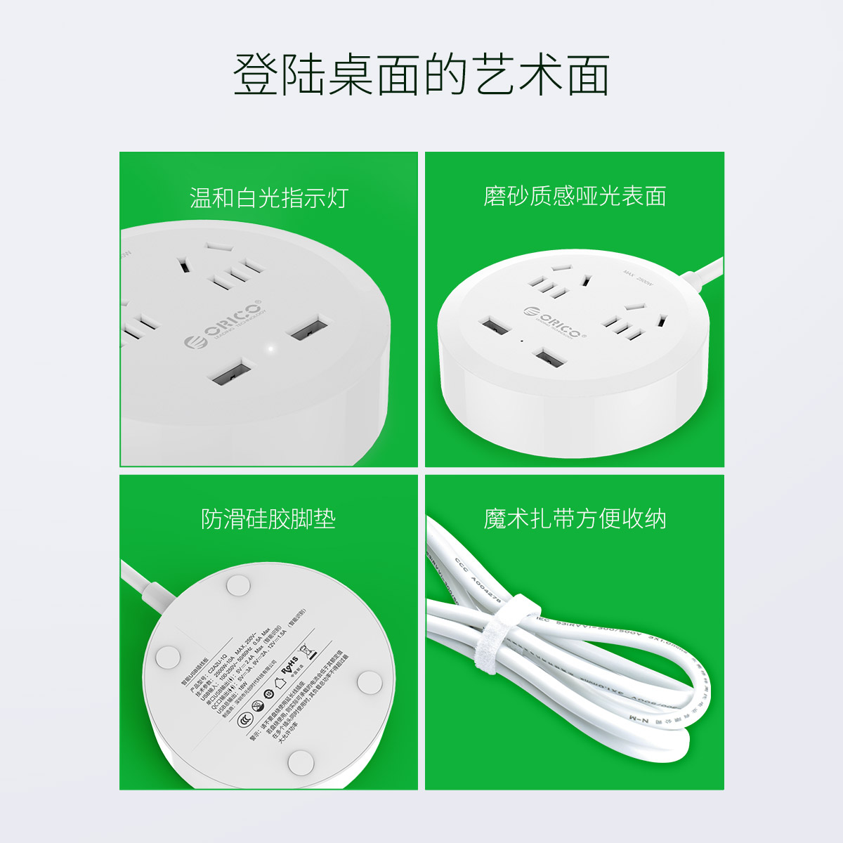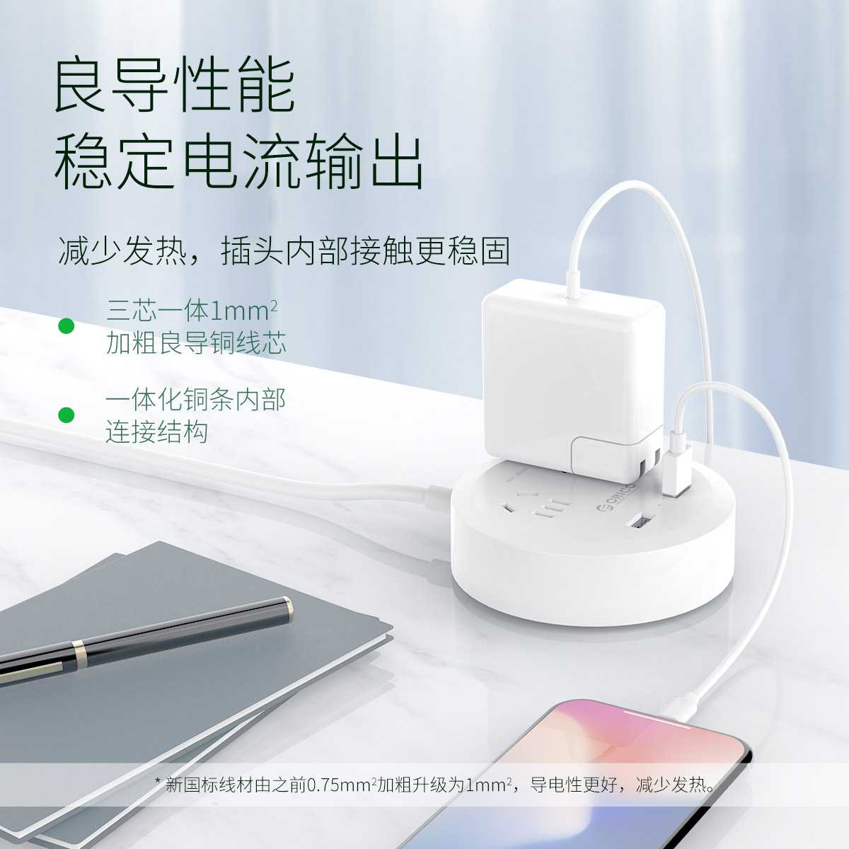 新國標5孔AC*2 + USB*2,1.5米線長,圓形板身。