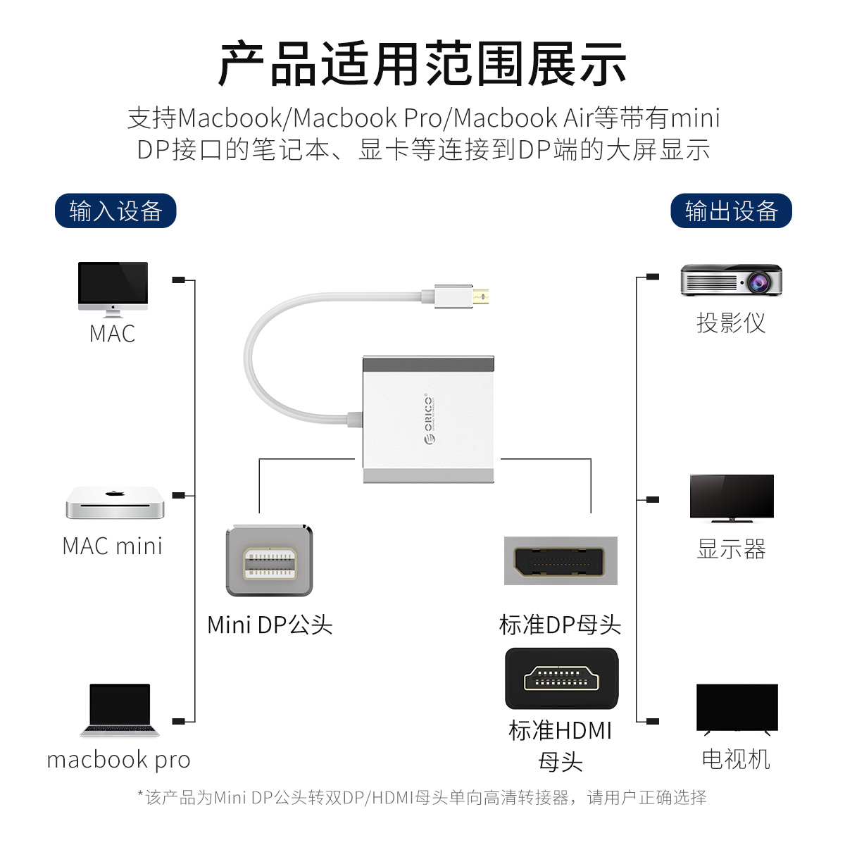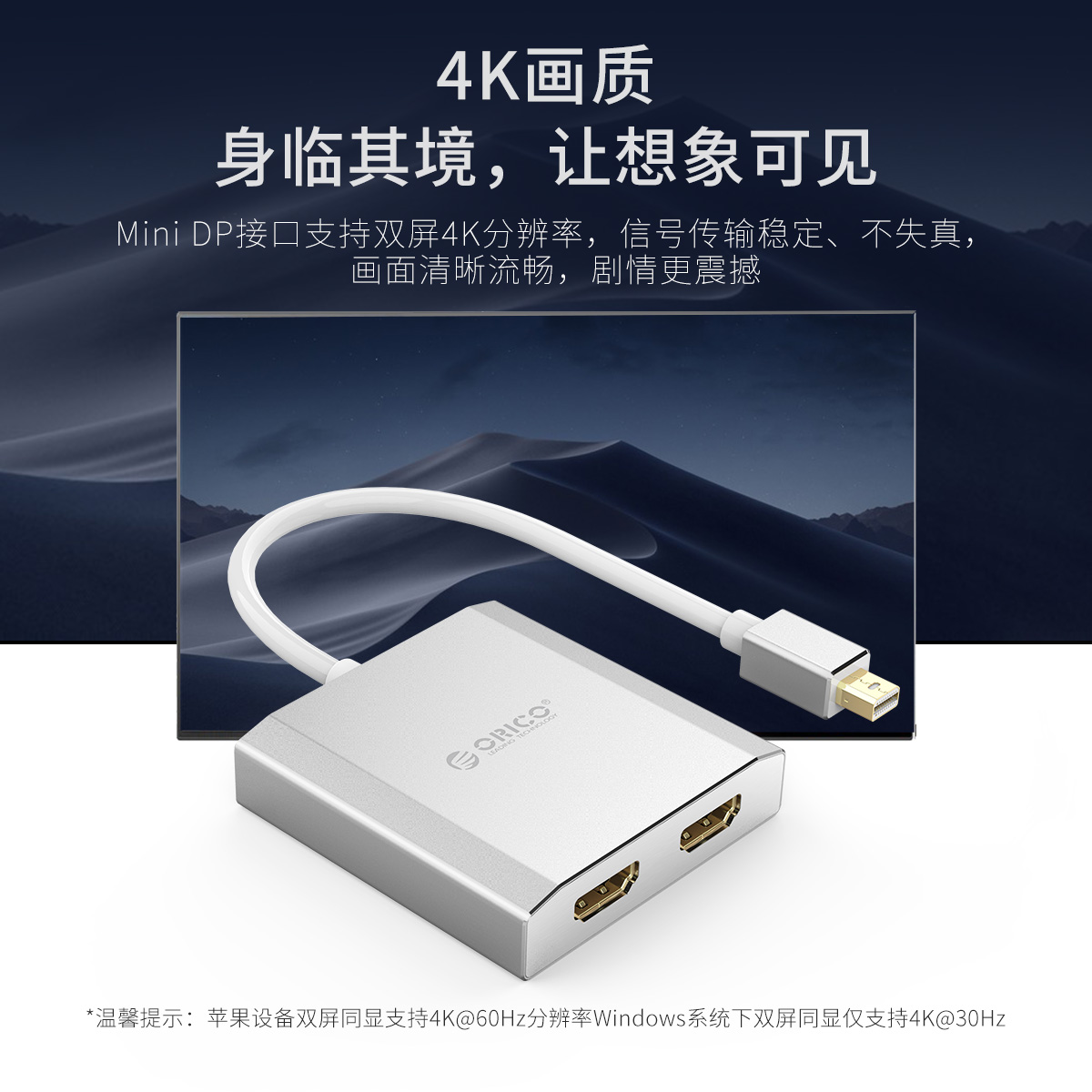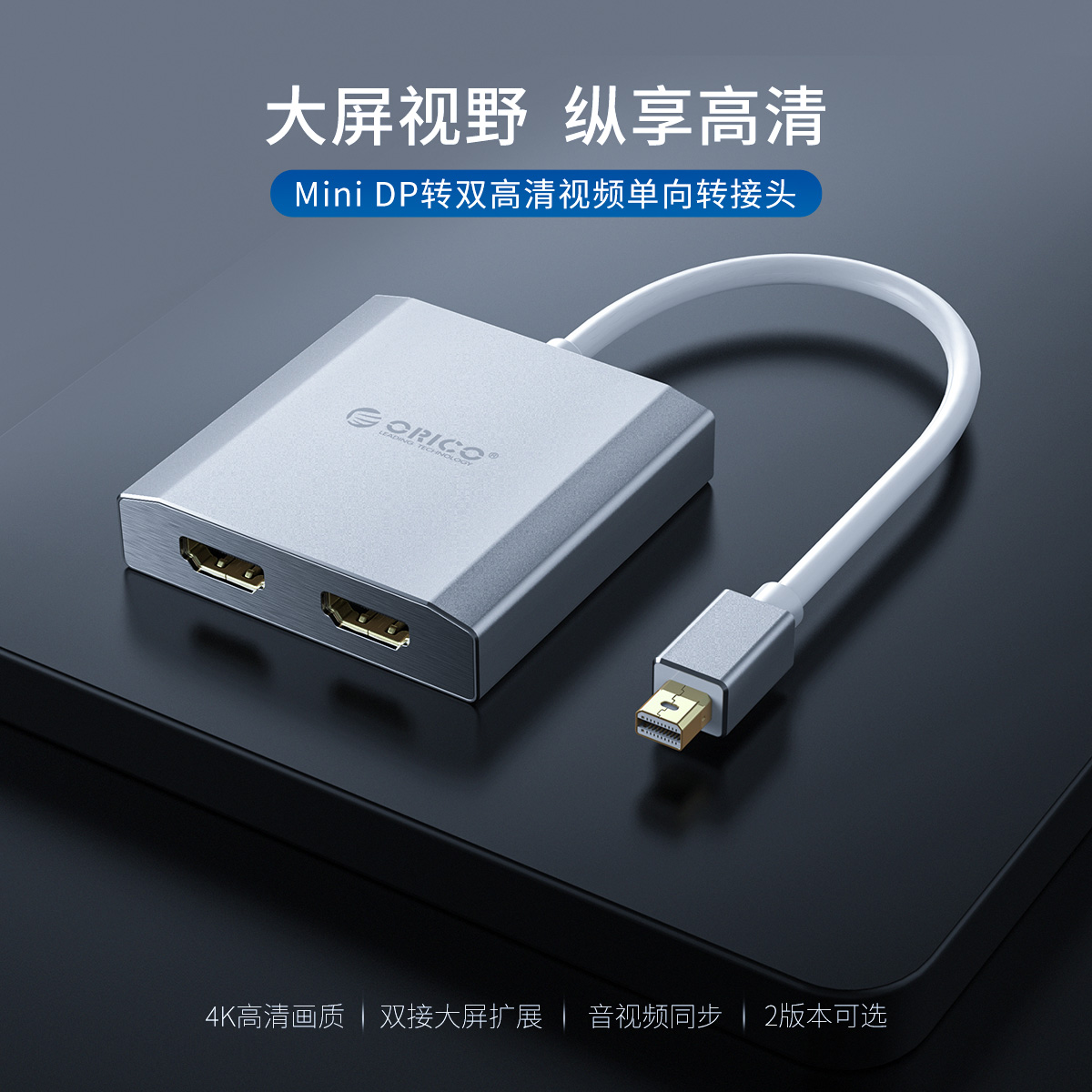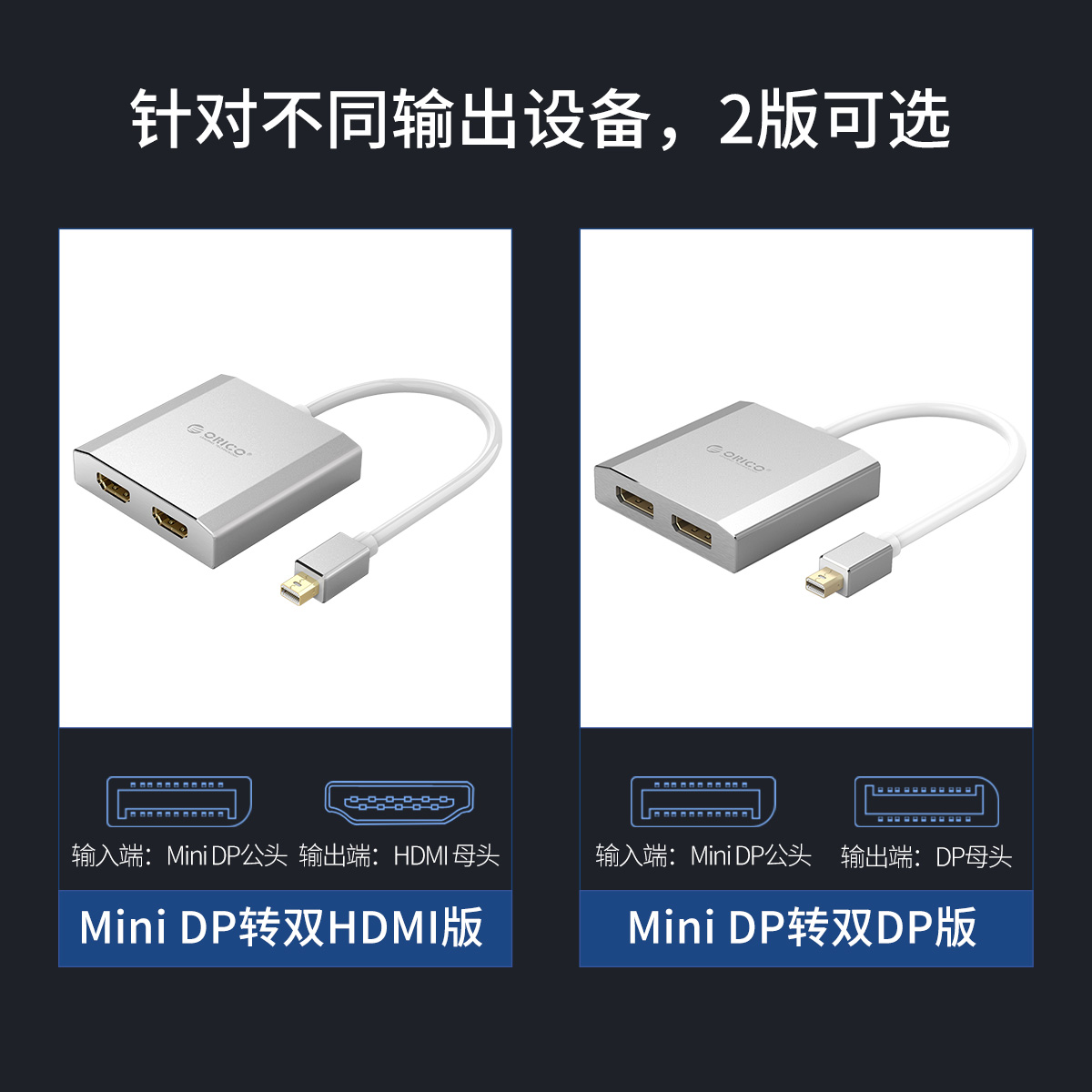 Mini DP轉雙 HDMI單向延長線轉接器