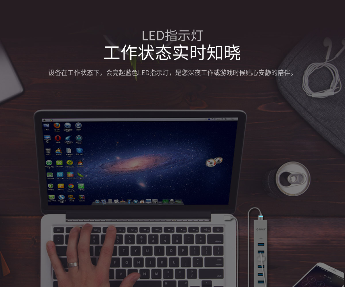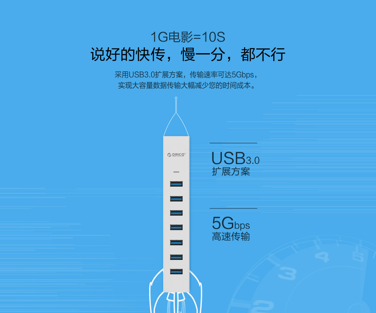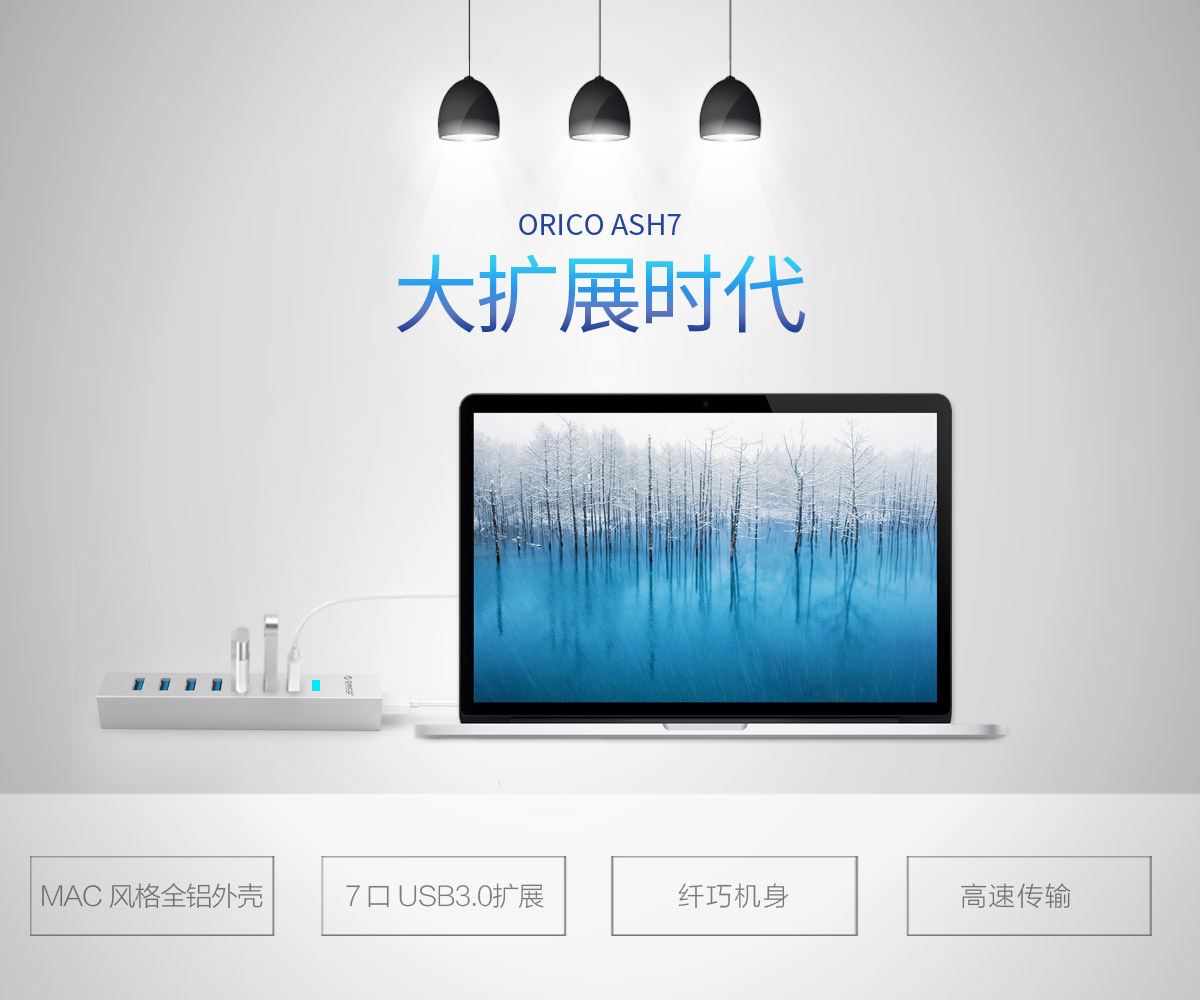 7口鋁合金USB3.0分線器,分離式數(shù)據(jù)線