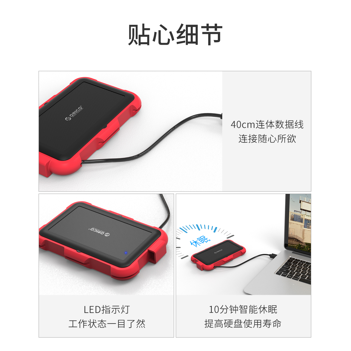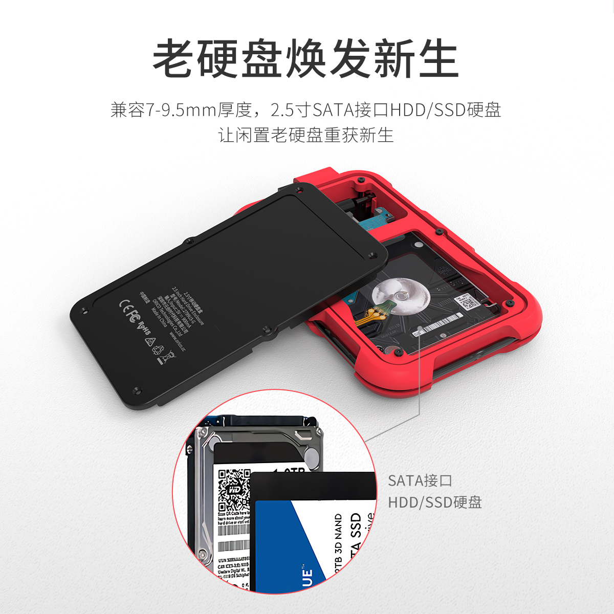 紅色硅膠 2.5寸SATA USB3.0移動硬盤盒