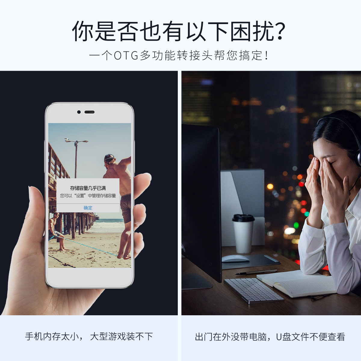 多功能轉接,手機秒變PC,1G電影3秒傳,兼容多種USB設備,鋁合金外殼,接口緊湊,移動辦公更隨心。