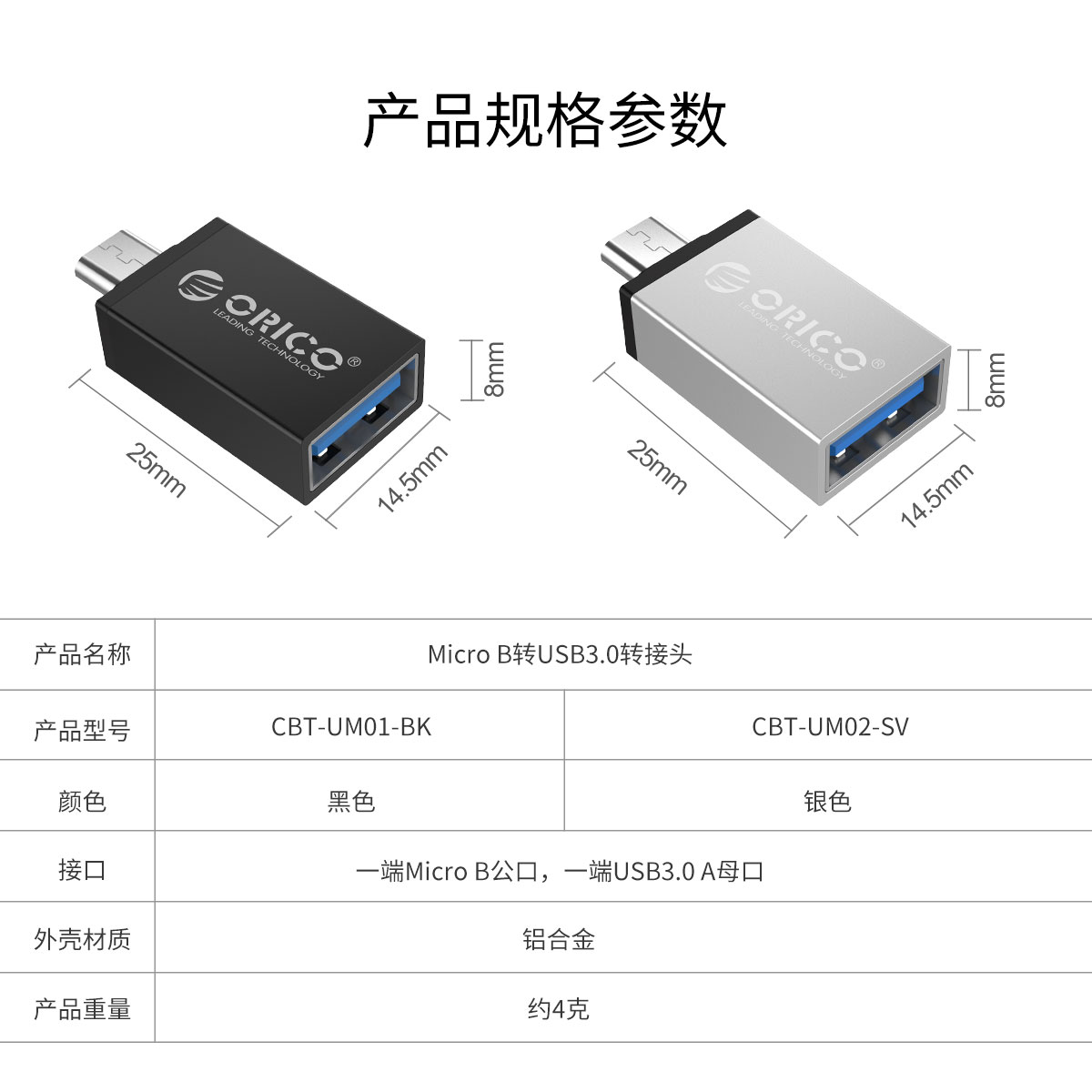 Micro B 轉USB3.0 A銀色OTG轉接頭