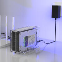 全景透視外殼,盡顯透明真芯,雙盤24T大容量,免工具快速安裝,當你的桌面迷你硬盤柜