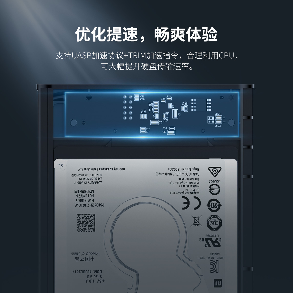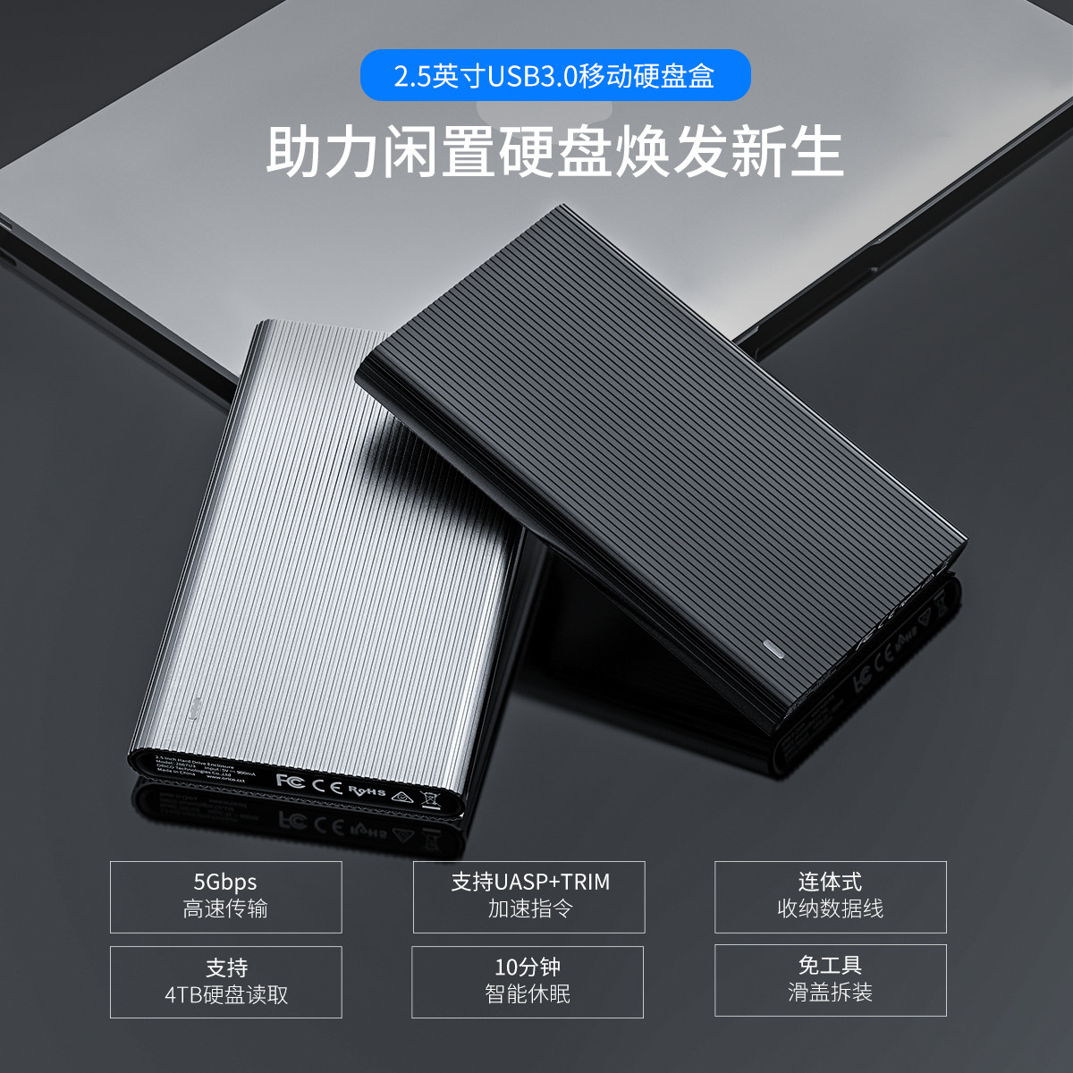 5Gbps高速傳輸,支持UASP+TRIM加速指令,連體式收納數(shù)據(jù)線,支持4TB硬盤讀取,10分鐘智能休眠,免工具滑蓋安裝。