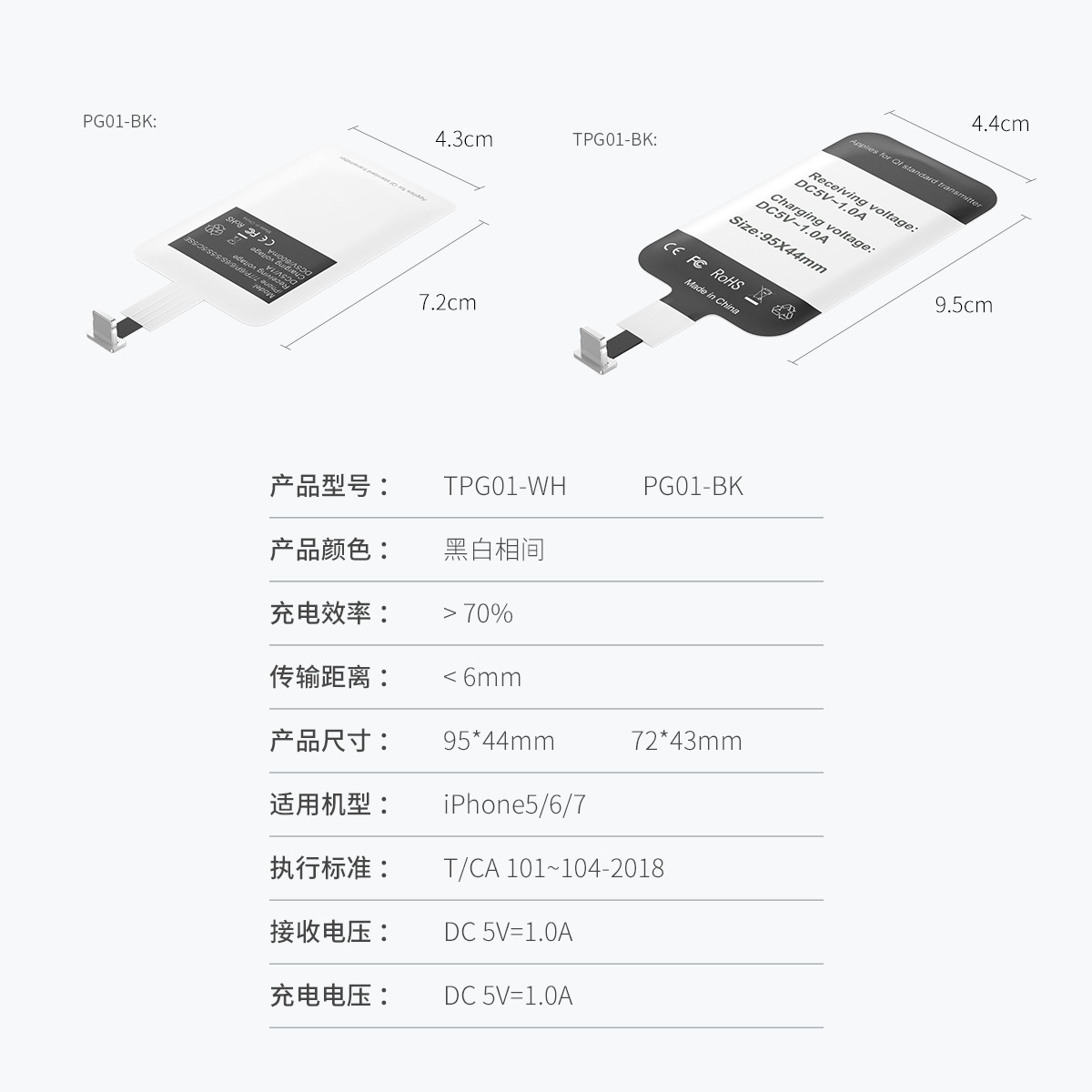 蘋果手機lightning接口無線充接收器(95*44mm黑白相間)