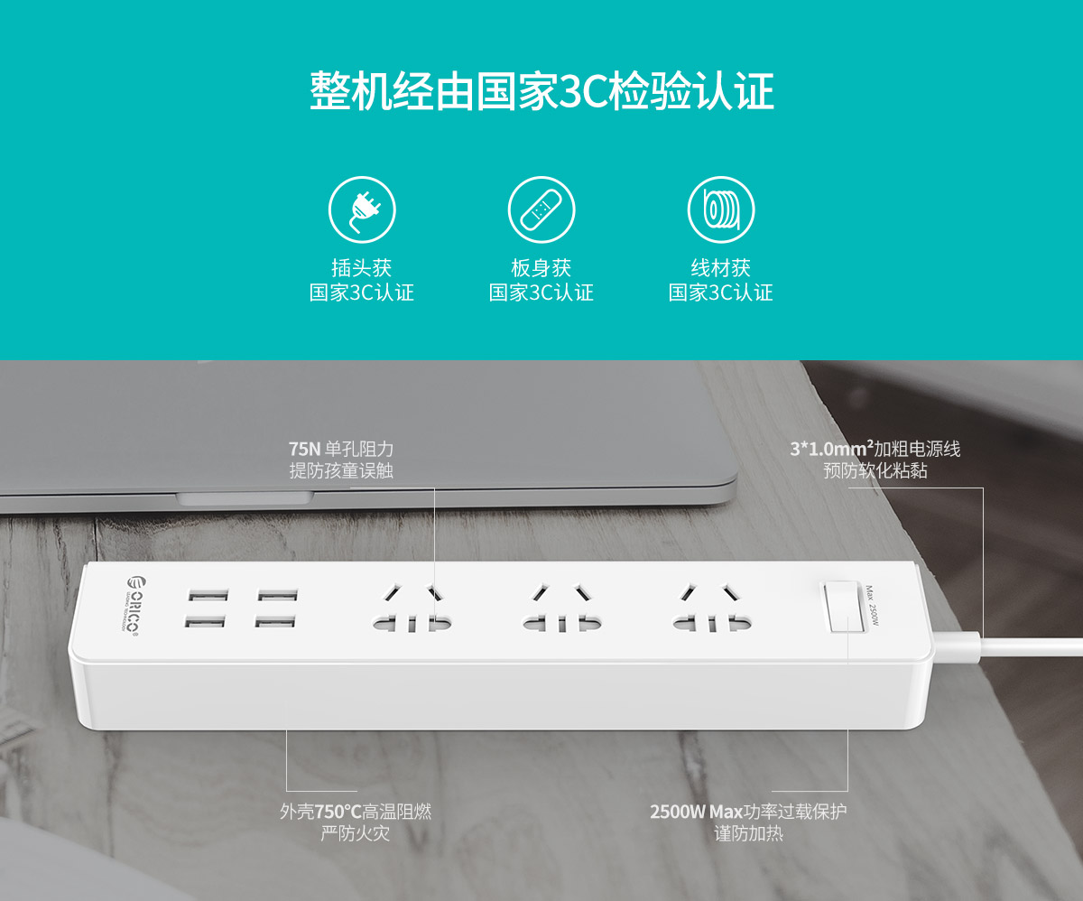 新國(guó)標(biāo)便攜桌面式排插,辦公智能排插,高溫環(huán)保材料,底座硅膠防滑