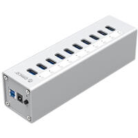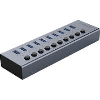 鋁合金10口USB3.0桌面集線(xiàn)器,12V獨(dú)立供電