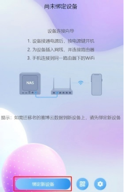 點擊搜索到的NAS設備 ,即會提示“設備綁定成功”。(注意:請確保電腦和NAS設備在同一局域網,才可發現到設備。)
