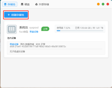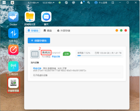 點(diǎn)擊首頁(yè)的“存儲(chǔ)池管理器”,進(jìn)入存儲(chǔ)池管理界面,點(diǎn)擊打開(kāi)“系統(tǒng)池”。