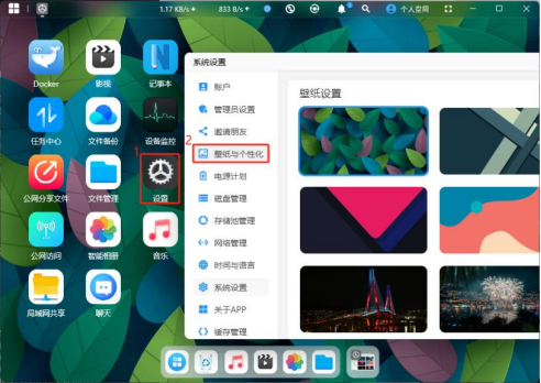 也可以點(diǎn)擊桌面的“設(shè)置”圖標(biāo),再點(diǎn)擊“壁紙與個(gè)性化”,完成壁紙?jiān)O(shè)置。