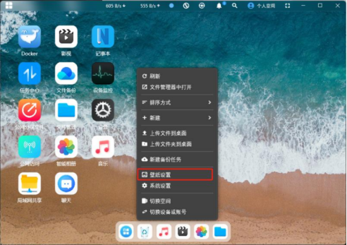 打開 賽博云空間 PC 客戶端首頁,在桌面右鍵選擇“壁紙?jiān)O(shè)置”。