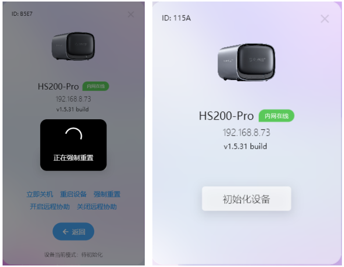 (3)輸入正確的SN后,會(huì)進(jìn)行重置,重置完成后需要重新綁定初始化設(shè)備。