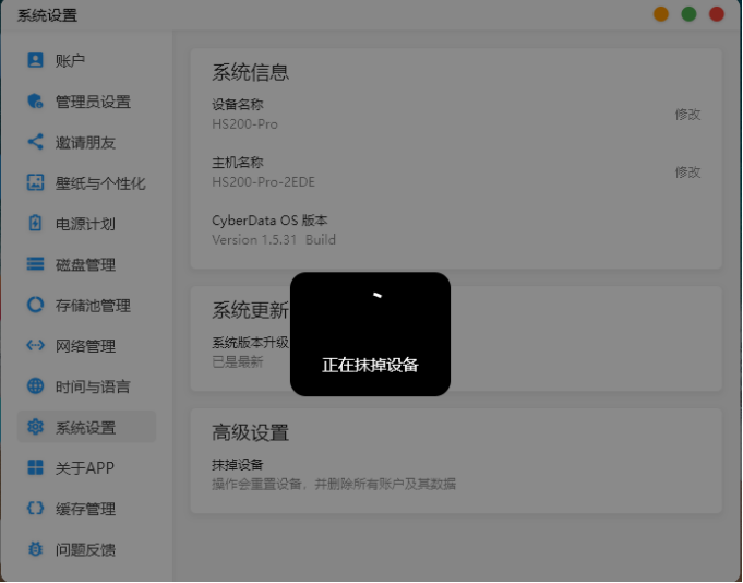 (3)設(shè)備將進(jìn)入抹除數(shù)據(jù)狀態(tài),抹除完成后會(huì)解綁此機(jī)器。